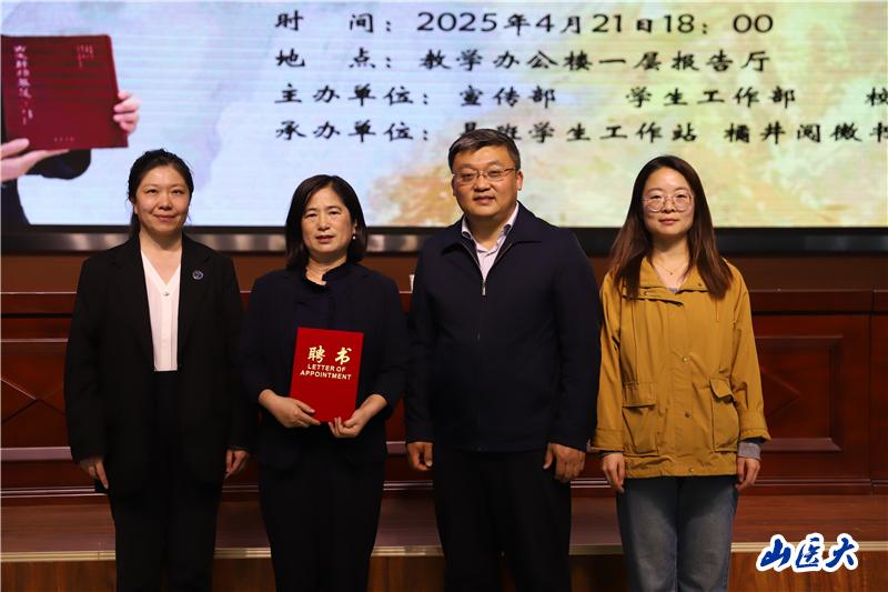 讲座开始前,学生工作部聘请王祝英编审为我校易班工作站指导教师,学生工作部副部长杨洁为其颁发了聘书。