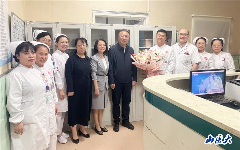 在第114个“5·12”国际护士节到来之际,我校第二医院党委书记成晓龙带领相关职能部门负责人深入临床一线,亲切慰问护理工作者代表,向全院广大护理工作者致以节日的问候和祝福。