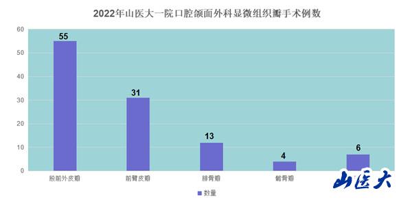 2022年,第一医院口腔颌面外科团队为1100余位住院患者进行了外科手术,其中口腔颌面头颈肿瘤切除后行即刻显微组织瓣修复者达109例,标志着口腔颌面外科在口腔颌面头颈肿瘤与整复领域达到一个新高度,进入全国先进行列。